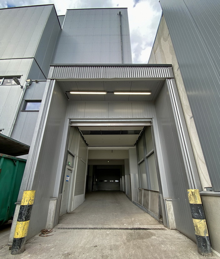 ca. 5 m hohen Stb.-Sockelbau mit Durchfahrt zur Erschließung der dahinterliegenden Produktionshalle.
