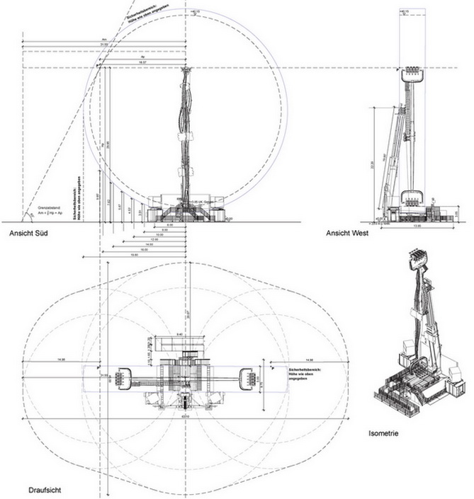 Abmessungen: Höhe Ausleger max. 40,15 m