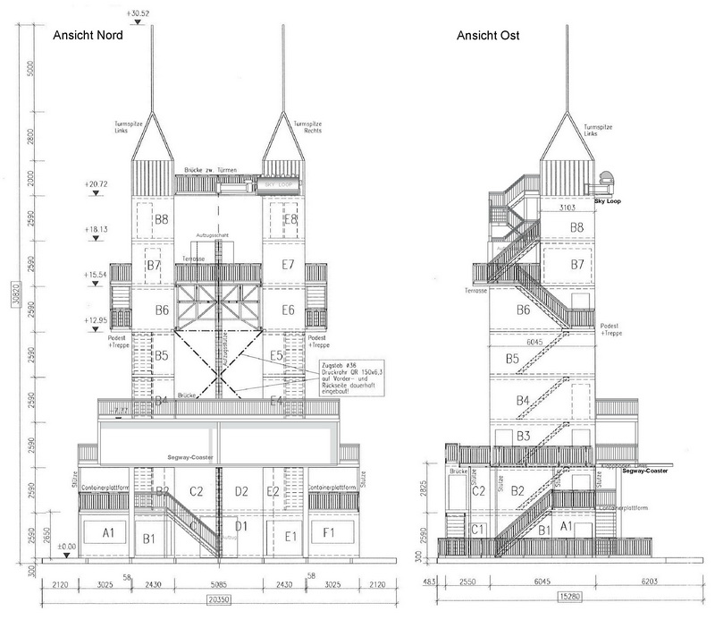 Abmessungen: Höhe ca. 22,50 m, 9 Ebenen