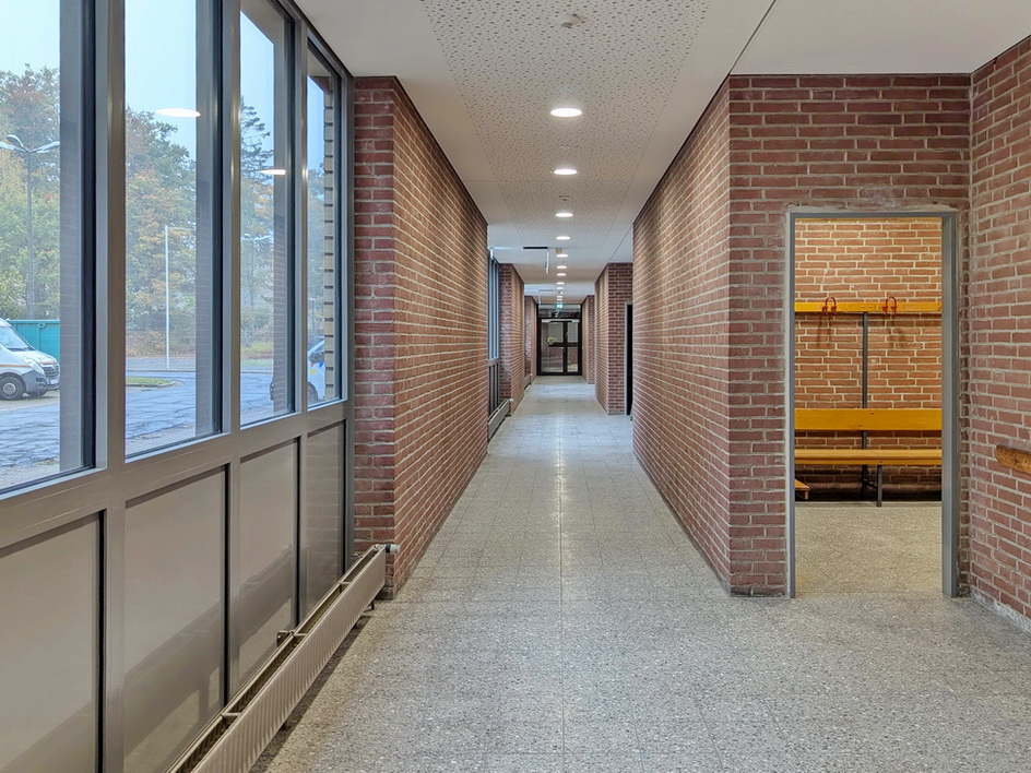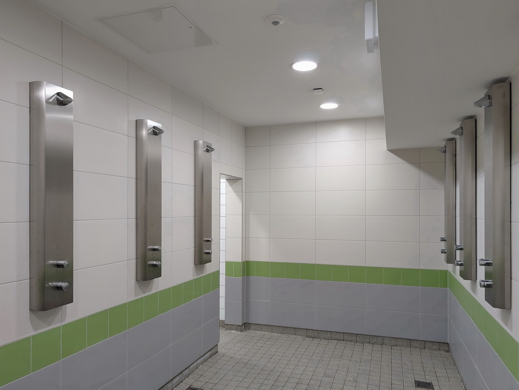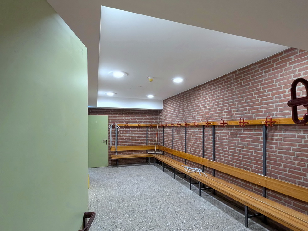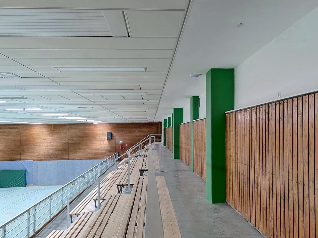 - Teilsanierung der Umkleide-, Wasch-, Dusch- und WC-Räume sowie von Tribüne, Fluren und Eingangsfoyer